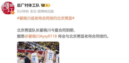 雷速體育5月26日訊 據(jù)媒體人“后廠村體工隊(duì)”報(bào)道,翟曉川今夏合同到期,休賽期將會(huì)與北汽以老將合同續(xù)約。