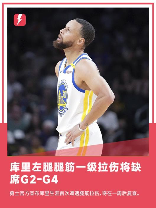 雷速體育5月8日訊 早些時候,勇士隊宣布當(dāng)家球星斯蒂芬·庫里經(jīng)核磁共振檢查確認遭遇左腿股二頭肌一級拉傷,將在一周后接受重新評估,這意味著他將至少缺席一周時間。