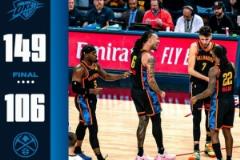5月8日訊 NBA季后賽首輪G2,雷霆主場149-106大勝掘金。