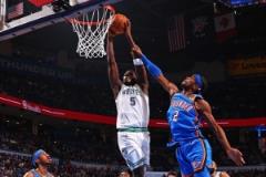 5月21日訊 NBA季后賽西部決賽G1,森林狼半場48-44領(lǐng)先雷霆。