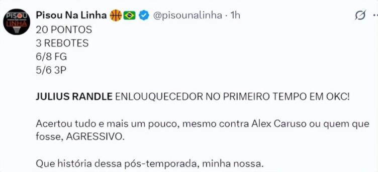 美媒:蘭德爾對(duì)陣?yán)做腉1太瘋狂了,他點(diǎn)名了所有人,就連打卡魯索也很成功,他這個(gè)季后賽太出色了。