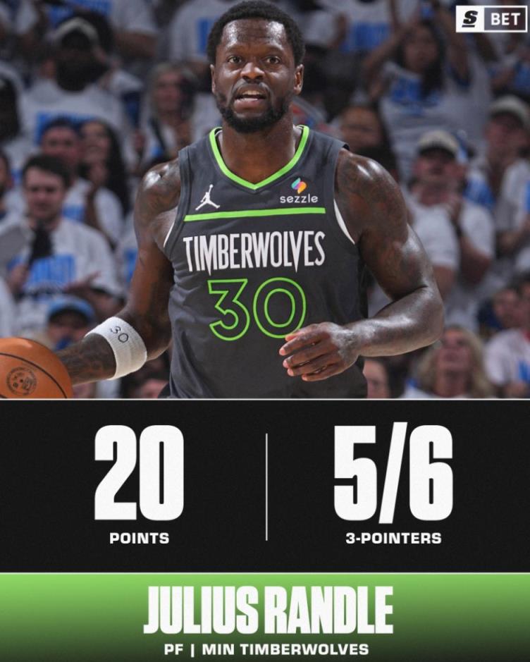 朱利葉斯-蘭德爾在今年季后賽的表現(xiàn)非常出色,進(jìn)入西決G1他還是有著超級(jí)穩(wěn)定的表現(xiàn),上半場(chǎng)三分6中5拿到20分,全場(chǎng)比賽28分8籃板1助攻。可以說(shuō)他已經(jīng)成為森林狼最穩(wěn)的那個(gè)點(diǎn),他的效率值比狼王愛德華茲還高,不管森林狼能走多遠(yuǎn),他下一份億元合同肯定是有保證的。