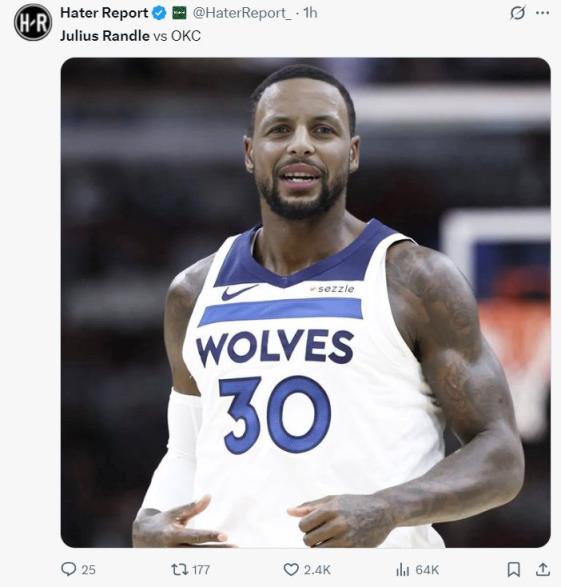 雖然森林狼輸球了,但蘭德爾依舊被贊庫(kù)里降臨。