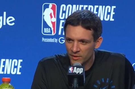 賽后,雷霆隊(duì)主帥戴格諾特出席了發(fā)布會(huì),他談到了系列賽取勝的感受。戴格諾特說道:“這些球員組成的這支球隊(duì)真是太有趣了。我們很高興能進(jìn)入決賽,但我不希望僅此而已,我也想一直執(zhí)教這支球隊(duì)。他們每天都是那樣,每天出現(xiàn)在他們身邊,和他們?cè)谝黄穑际且欢坞y以置信的經(jīng)歷。我覺得他們彼此之間汲取了各自的能量。我認(rèn)為,在一個(gè)漫長(zhǎng)的賽季里,有很多起伏,他們會(huì)為彼此帶來能量,為環(huán)境帶來能量,我們都能從中受益。首先,也是最重要的,正是因?yàn)橛羞@群球員,我才能發(fā)揮出最好的執(zhí)教水平?!?