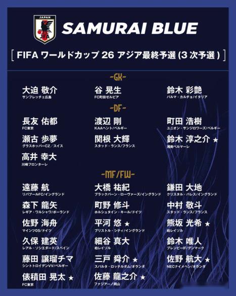 北京時(shí)間5月23日,日本隊(duì)公布6月世預(yù)賽大名單。其中,遠(yuǎn)藤航領(lǐng)銜名單,久保建英、鐮田大地在列。目前,與國(guó)足同組的日本隊(duì)已提前出線,大名單中多名新人及J聯(lián)賽球員入選。