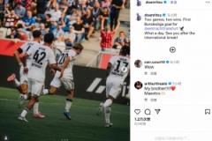 比賽結(jié)束后,堂安律在社交媒體上發(fā)布了與隊(duì)友慶祝的照片,并配文寫道:“兩戰(zhàn)兩勝,而且我收獲了法蘭克福生涯的德甲首球,多么美妙的一天!國(guó)際比賽日后再見!”