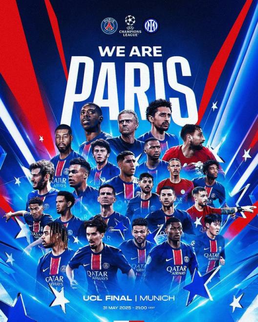北京時間5月31日,巴黎圣日耳曼官方公布了歐冠決賽海報。