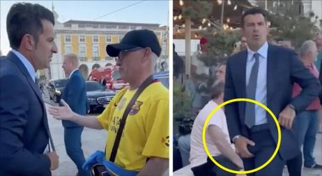 當(dāng)菲戈經(jīng)過(guò)一群巴塞羅那球迷時(shí),其中一人大喊他為“叛徒”(菲戈在2000年從巴薩轉(zhuǎn)會(huì)至皇家馬德里引發(fā)巨大反響)。