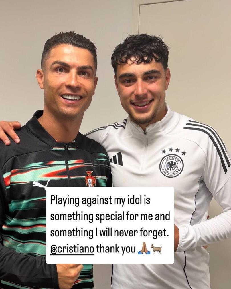 北京時(shí)間6月5日,在德國(guó)與葡萄牙的歐國(guó)聯(lián)半決賽比賽結(jié)束后,德國(guó)小將亞歷山大-帕夫洛維奇通過(guò)社交媒體曬出了與偶像C羅的合影。
