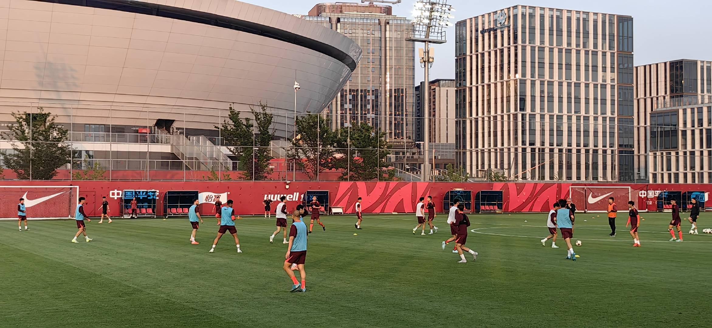 國足主教練伊萬科維奇在本日的訓練中安排了半場攻防訓練。有傷在身的汪士欽和劉若釩沒有加入,在場邊獨自訓練。